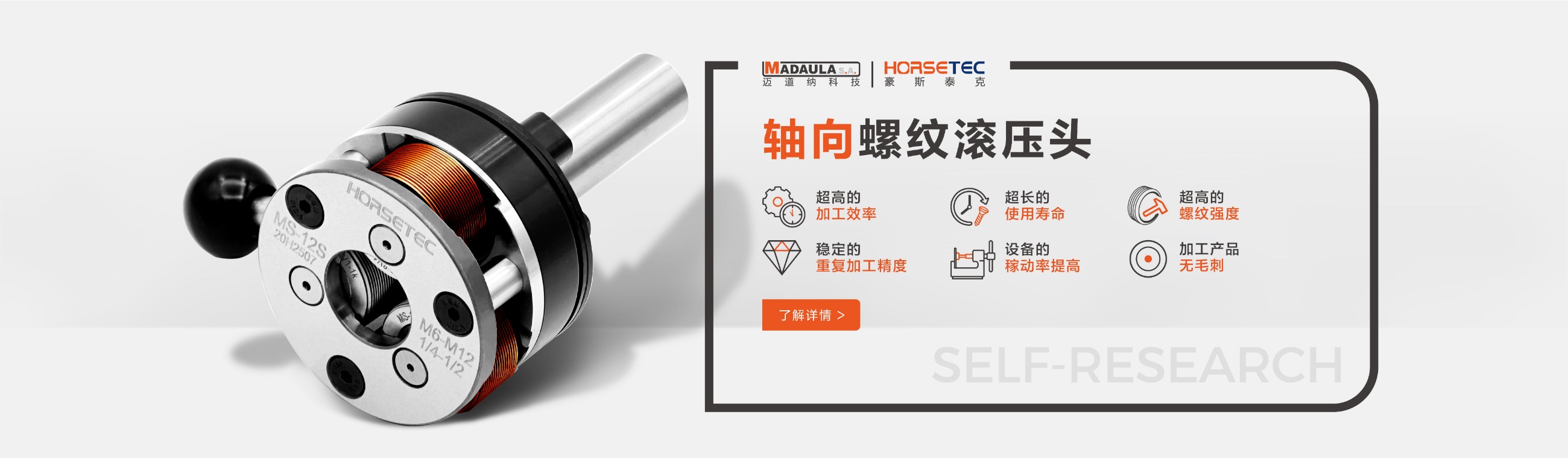 很多做機械的對螺紋滾壓頭都不陌生,它的功能和優(yōu)勢也是有口皆碑的,所以現(xiàn)在有越來越多的人愿意選擇HORSETEC螺紋滾壓工具來滾壓螺紋,而我們常見到的螺紋滾壓工具是采用鋼材料制作而成的一種滾螺紋加工工具,成功沿襲傳統(tǒng)的螺紋滾壓頭的所有優(yōu)勢,比如高效率、高精度、高強度,除此之外,螺紋滾壓頭可以定制您的專屬logo,不僅有效提升了產(chǎn)品的檔次,給使用者帶來不錯利益。今天要給大家說一說高質(zhì)量的螺紋滾2022-09-13