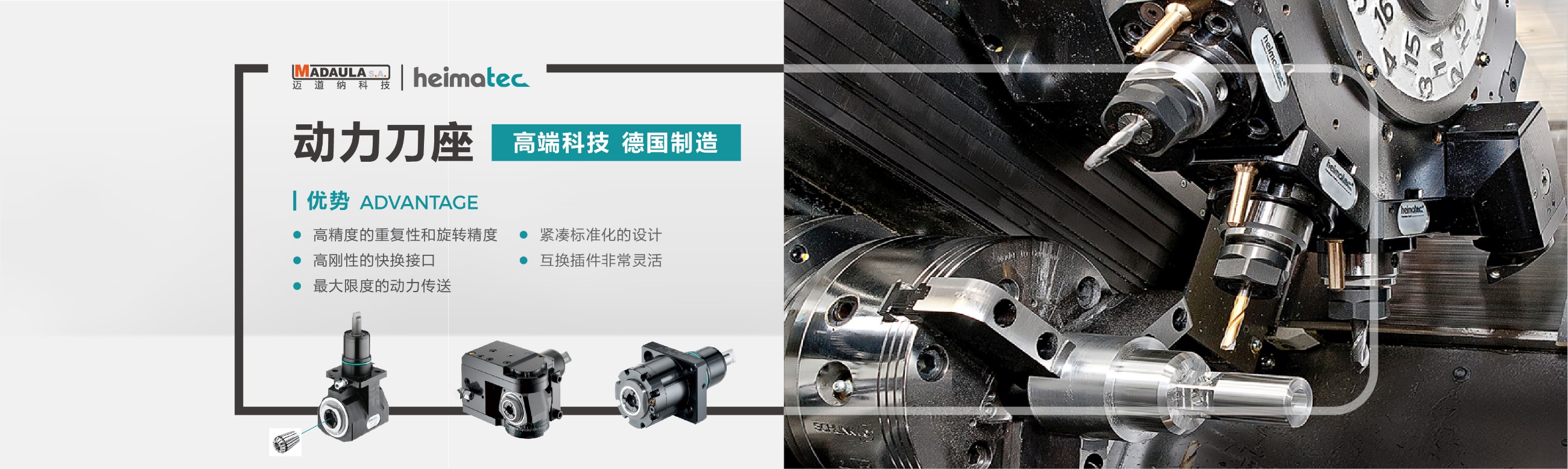 德國heimatec · 動力刀座 -- 品質(zhì)可靠、經(jīng)久耐用、可以不間段連續(xù)工作; -- 全球各大機床廠家標(biāo)配產(chǎn)品